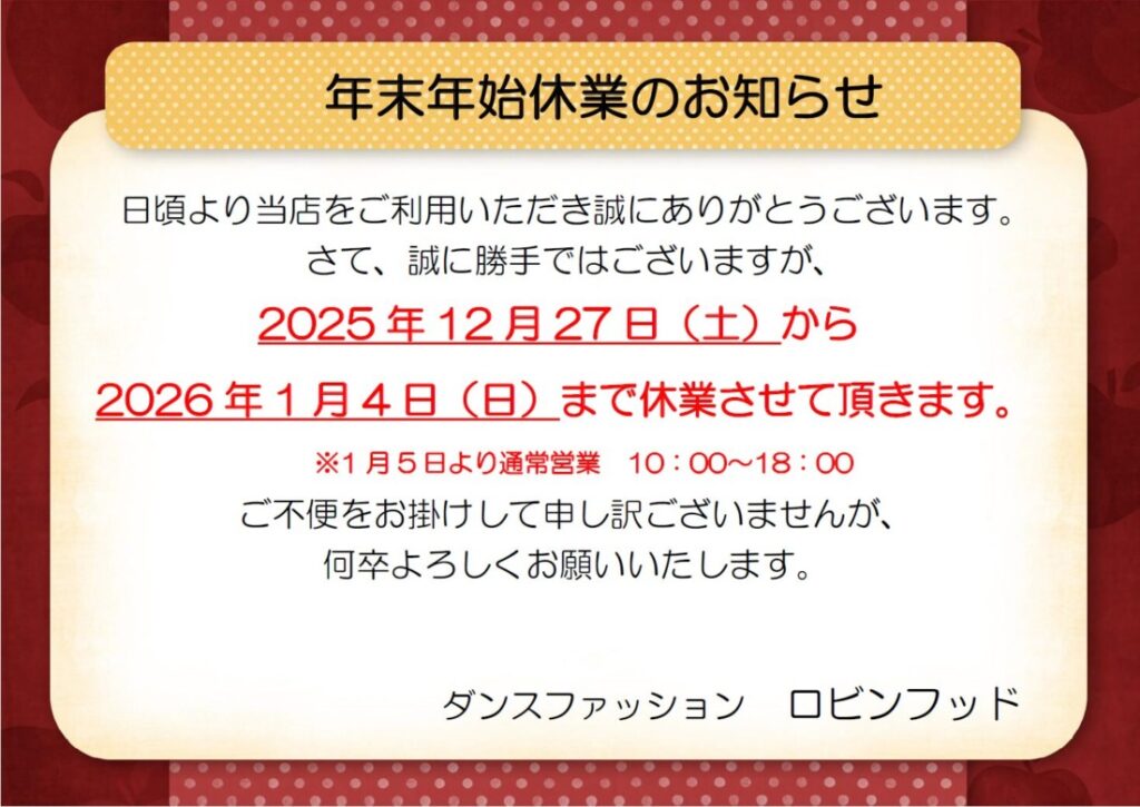 2025年12月27日(土)~2026年1月4日(月)終日休業